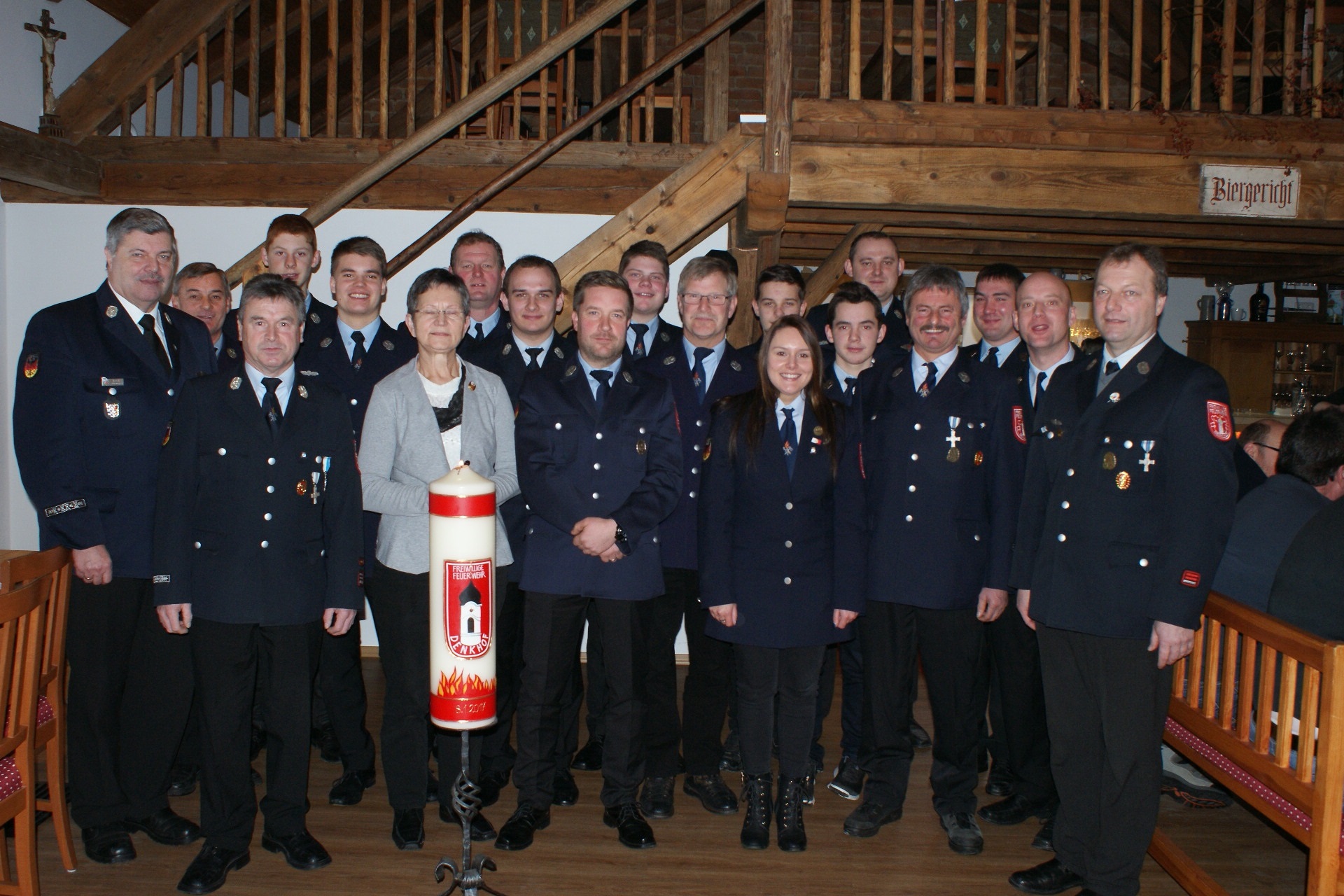 Im Vordergrund der Jahresberichte standen Übungen, Einsätze und große Investitionen in Ausrüstung und Gerätehaus. Nach dem Gedenkgottesdienst für die im letzten Jahr verstorbenen Mitglieder Anton Krenn und Fritz Reischl wurde die Versammlung im Hofstüberl Grundmüller abgehalten. Vorstand Thomas Eibl bedankte sich als erstes bei der Fahnenmutter Hannelore Weidinger für die Spende einer Gedenkkerze, die von BGR Herbert Oberneder gesegnet und erstmals angezündet wurde. Der Vorstand erinnerte auch an die Ehrung von Frau Weidinger mit der goldenen Feuerwehr Ehrenbrosche anlässlich ihres 40-jährigen Fahnenmutterjubiläums im letzten Jahr. Außerdem wurde die Außenfassade des Gerätehauses saniert, eine Wärmebildkamera angeschafft die besonders für den Atemschutz ein wichtiges Instrument ist. Es wurden mit der Gemeinde zusammen die Kosten übernommen für die Führerscheine von 4 Feuerwehrlern, die zum Führen des Feuerwehrautos befähigen. Am Ende seiner Ausführungen bedankte sich Vorstand Eibl bei der Vorstandschaft, den Aktiven und besonders der Feuerwehrjugend für die Mitarbeit und die Unterstützung bei den verschiedensten Anlässen. Er erwähnte auch die sehr gute Zusammenarbeit mit Bürgermeister und Gemeinde, der Feuerwehrführung sowie den benachbarten Wehren.
