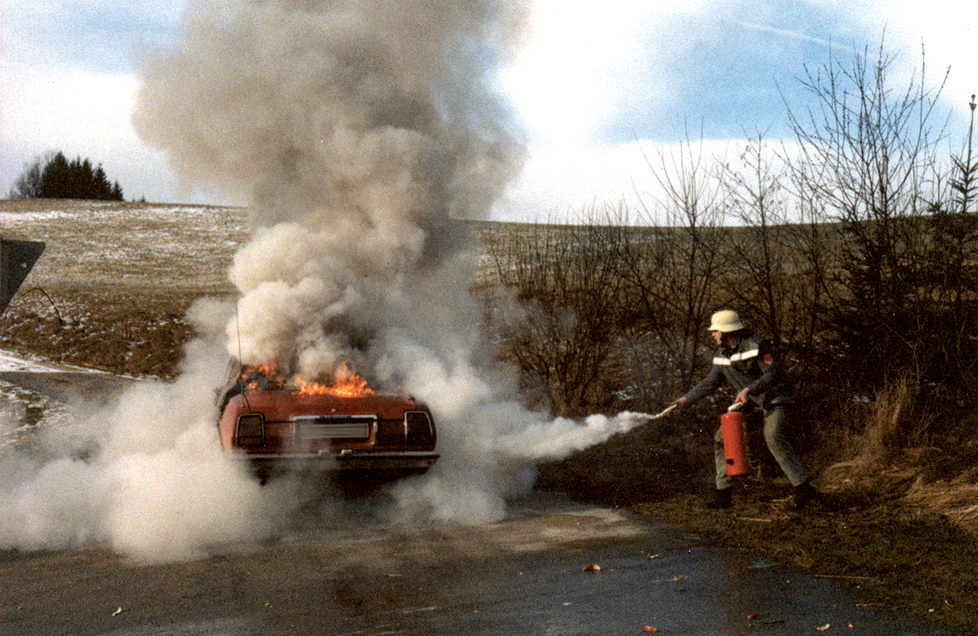 Um schneller an die Einsatzstelle gelangen zu können, wurde das erste Feuerwehrauto (VW-Bus) gekauft.