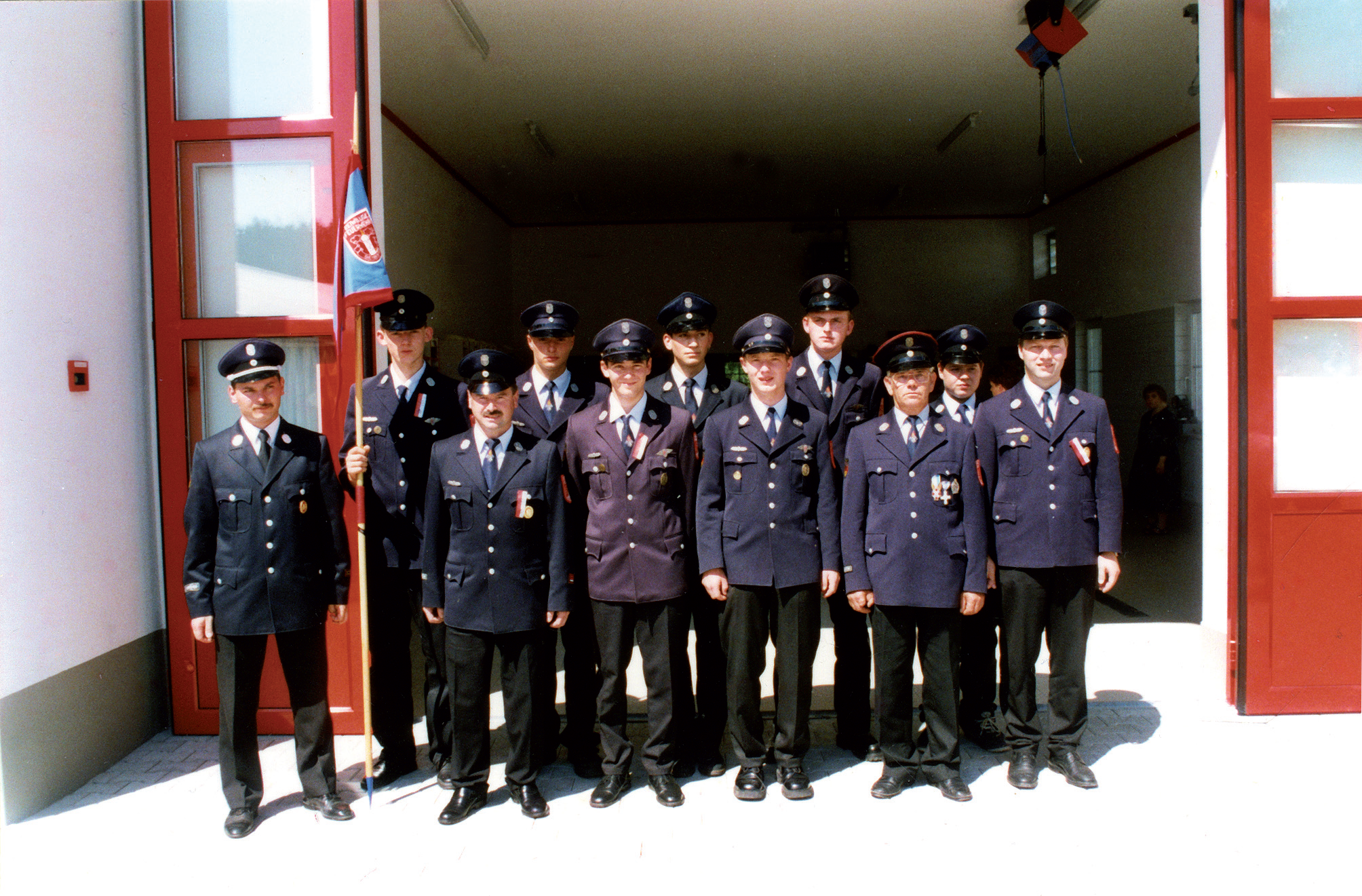12./13. August: Bei herrlichem Sonnenschein und 20 anwesenden Vereinen bildete die Einweihung unseres Feuerwehrhauses durch Feuerwehrpfarrer Gotthard Weiß den Höhepunkt eines gelungenen Festes. Ausserdem wurde ein Wimpel anlässlich des 25-jährigen bestehens der Jugendgruppe geweiht.