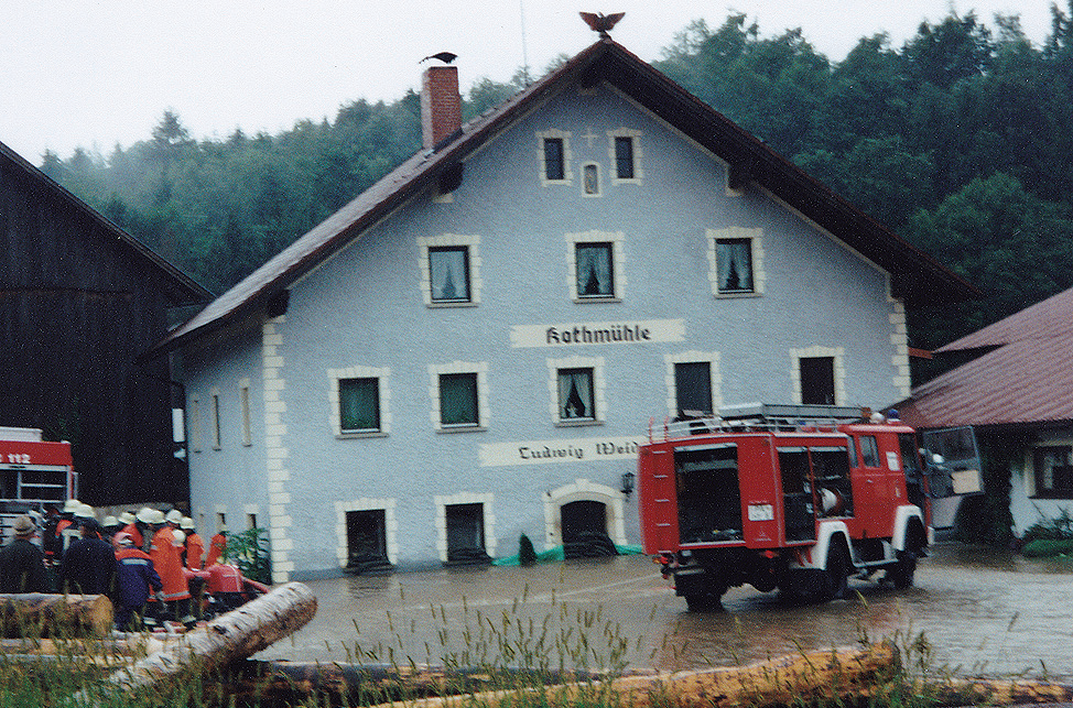 12.-15 August: Technische Hilfeleistung wegen der aussergewöhnlich schweren Überschwemmungen im Schutzbereich (Gründinger Steinmühle, Weidinger Kotmühle).