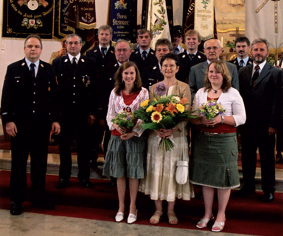Sitzend von links: Christina Philipp, Fahnenmutter Hannelore Weidinger, 1. Bürgermeister Norbert Marold, Tanja Schätzl, Theresa Krenn